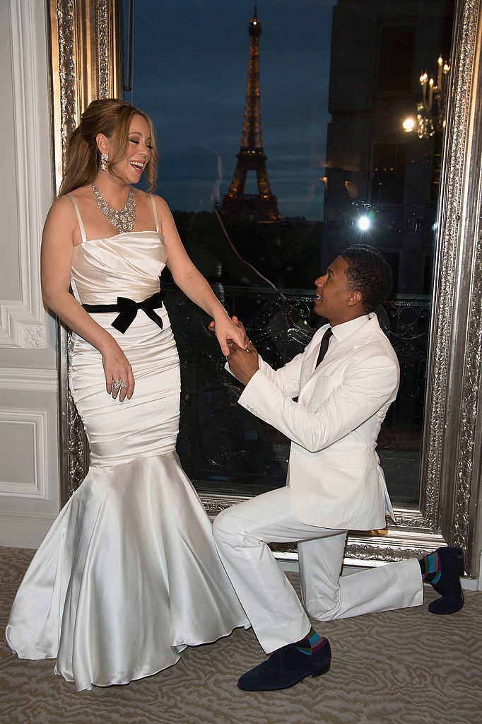12.Mariah Carey and Nick Cannon first met at the 2005 Teen Choice Awards. Three years later, she cast him as her love interest in her "Bye Bye" music video. That April, Mariah's rep denied dating rumors to People. However, while they were keeping their relationship secret from the public, things were moving rather quickly behind the scenes! Nick proposed to her twice β once with a 17-carat pink diamond ring hidden inside a Ring Pop, and once during a NYC helicopter ride.